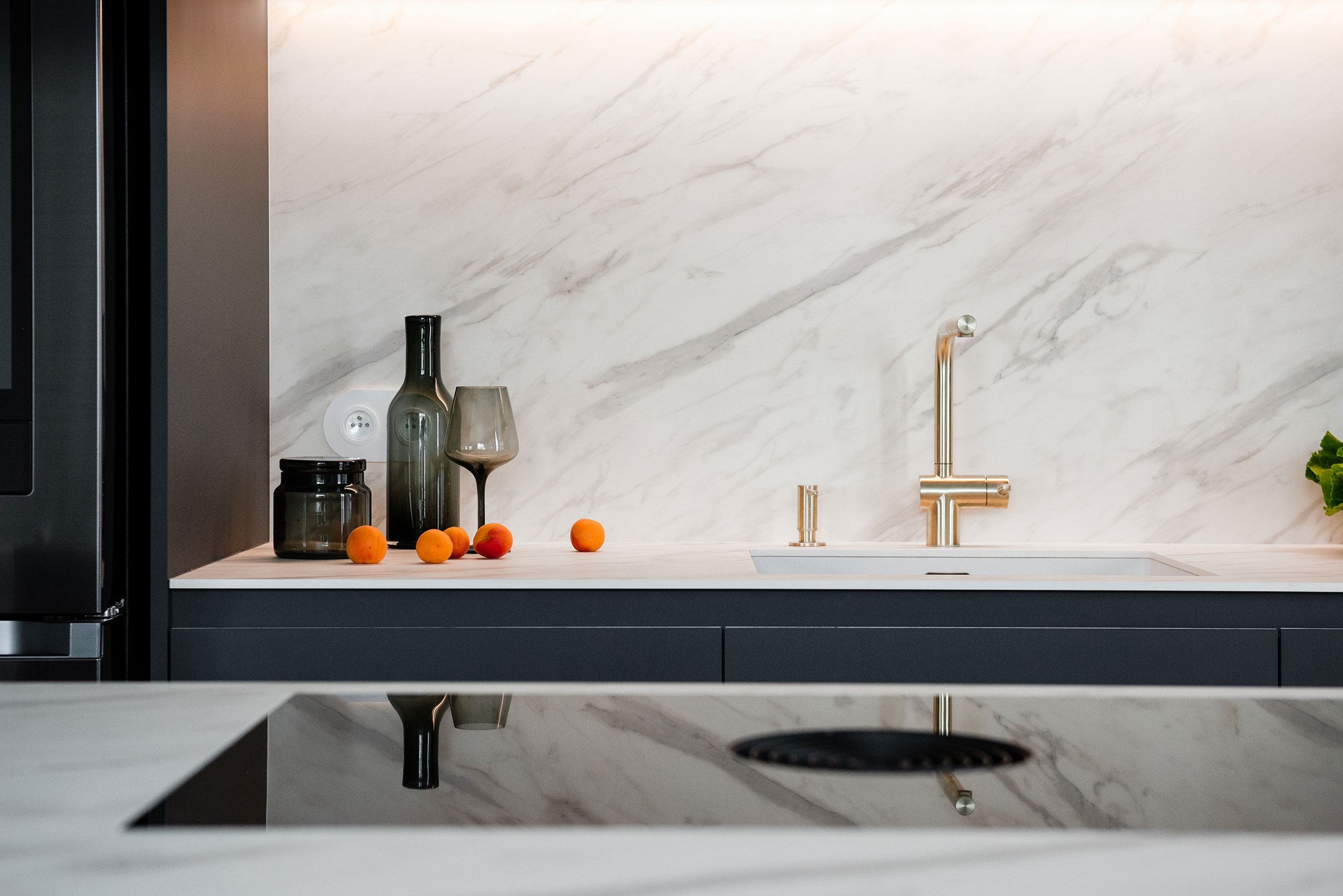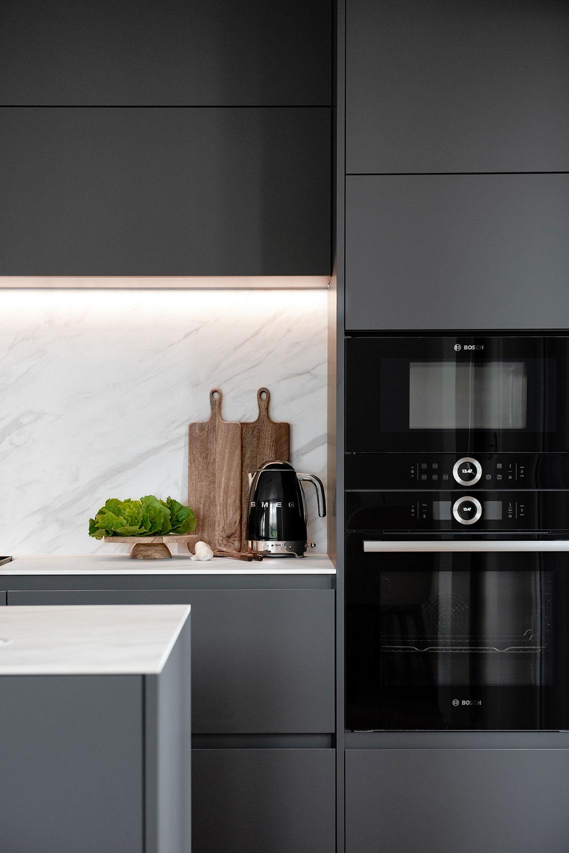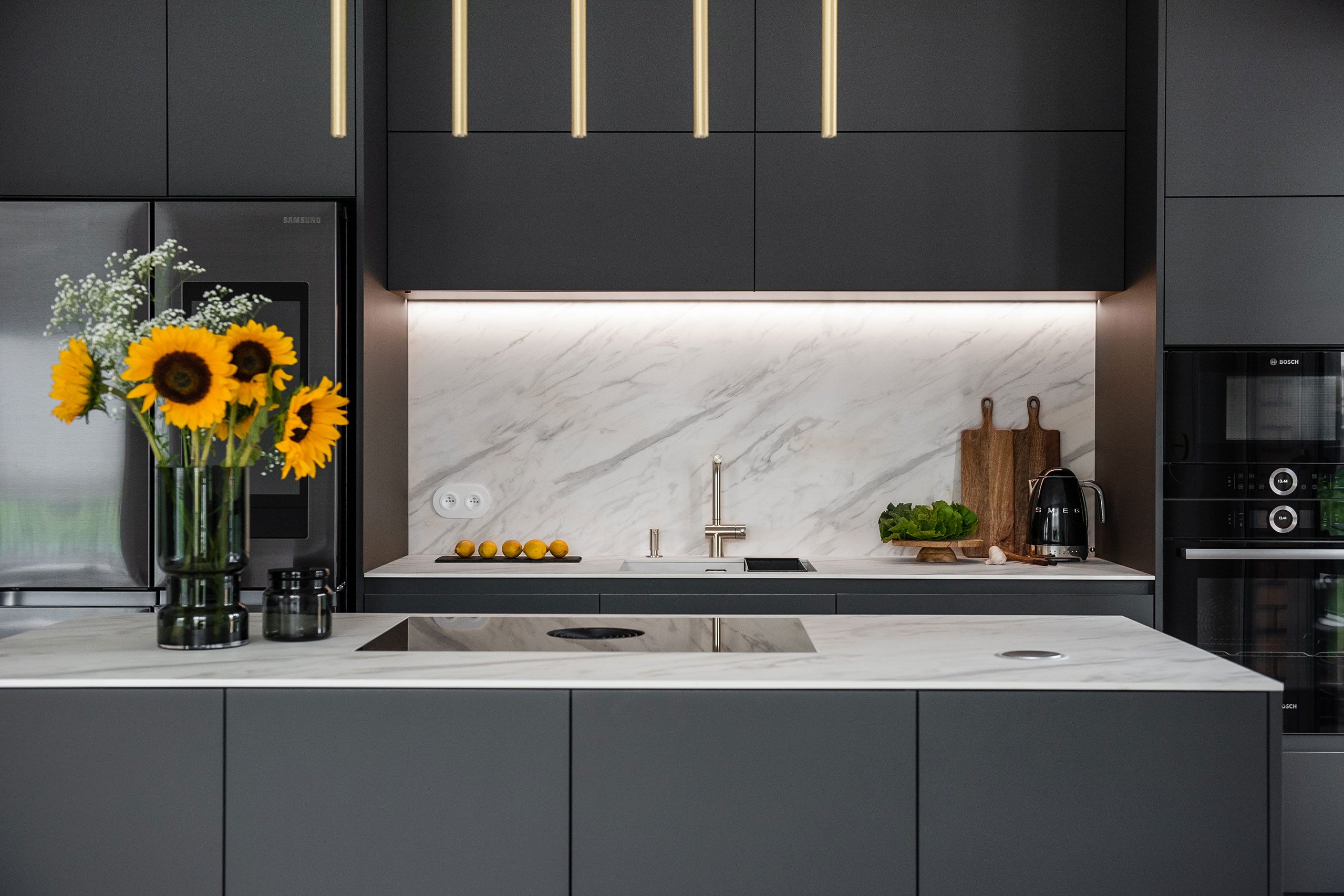Bespoke Modern Kitchen: Regal Gray, White and Gold